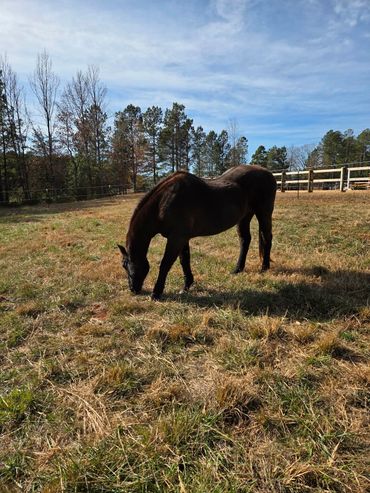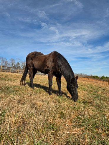 Instead of trudging along fence lines, he now revels in short romps through the pasture, satisfying rolls in the grass, and indulging in the best food we have to offer.