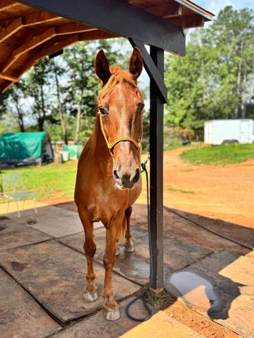 He came to Wandering Hearts Rescue after losing his longtime pasture companion. Heartbroken and confused, Camelot was surrendered to us with a spirit that seemed dimmed by grief. Over the next year, with time, patience, and soft words, he found exactly what he needed most—another best friend. Camelot formed a deep bond with a big, older gelding, and the two quickly became inseparable: grazing shoulder to shoulder, sharing naps in the sun, and quietly watching over one another.