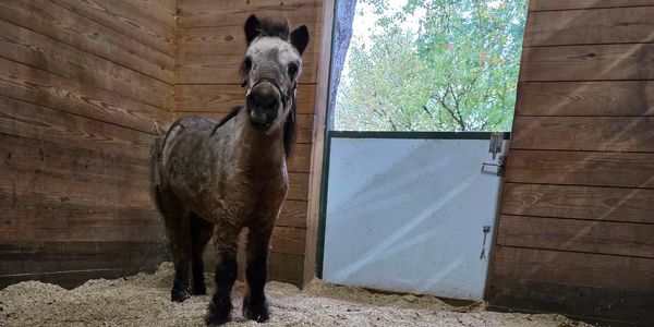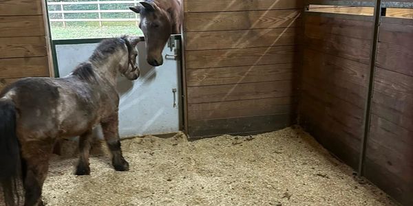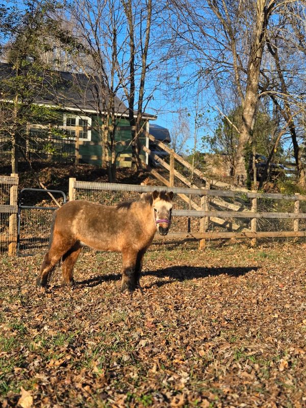 Jiji has a couple of mellow full-size horses as her current companions and will be moving into a group of minis in the next couple of months. They are working hard to increase her catchability!